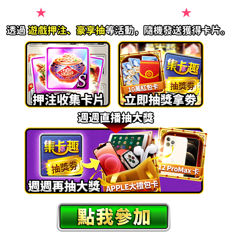1.集卡趣,週週抽獲獎名單,於開獎當天20點前公佈。 (WEB:獲獎名單>集卡趣;APP:好康活動>獲獎名單>集卡趣)。