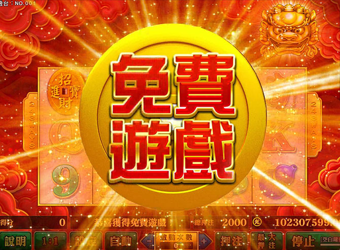 在遊戲中,第一輪從左到右出現3個(含)以上錢幣圖騰,即進入免費遊戲(FG)。
